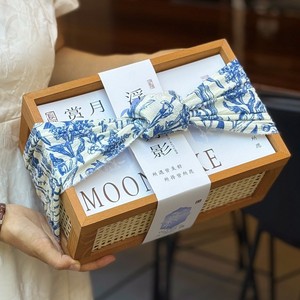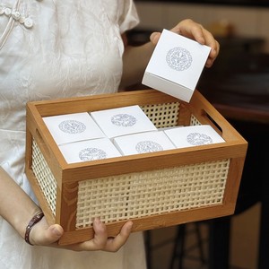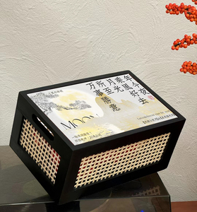 藤编实木盒+青花包布+封条+装饰纸+青花小内盒一套 不带槽