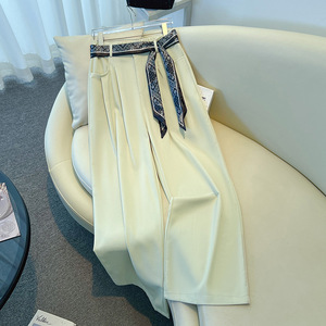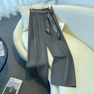 灰色西装阔腿裤女2025春秋新款西装裤垂感小个子拖地窄版直筒裤子
