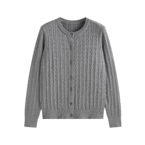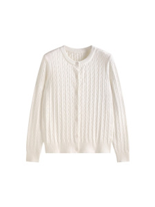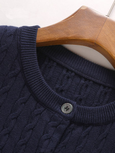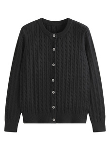 2025秋冬季新款韩系纯色麻花毛衣针织开衫女时尚气质圆领外套上衣
