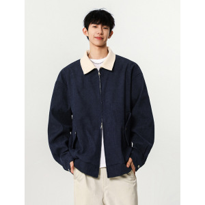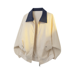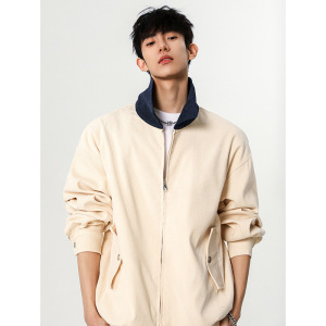 美式撞色翻领夹克男女秋季潮牌双拉链工装外套复古休闲情侣上衣服