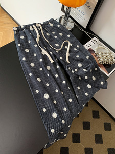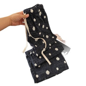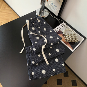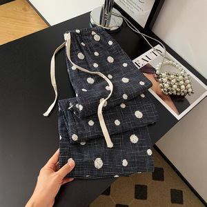 显瘦阔腿裤女显瘦垂感波点刺绣抽绳直筒休闲裤女夏九分裤新款百搭