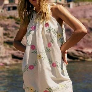 法式SZ家25夏季新品甜美田园风刺绣花朵无袖宽松蝴蝶结挂脖吊带裙