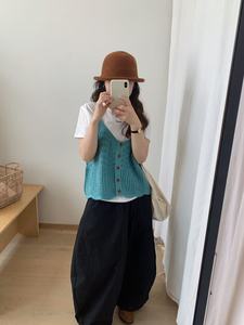 韩系外贸新款镂空设计感羊毛混纺无袖叠穿小背心女多巴胺色系外搭