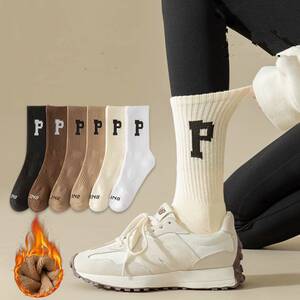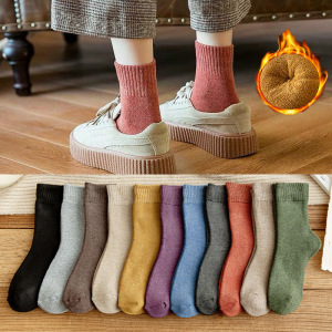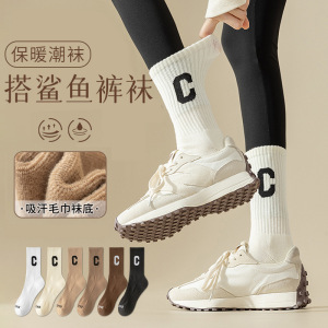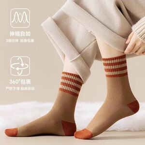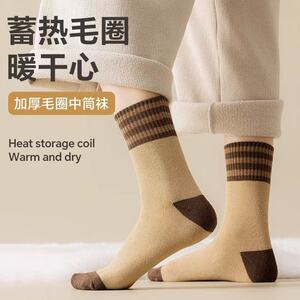 厚袜子女冬季毛圈中筒袜加绒保暖条纹运动防臭秋冬款毛巾长筒女袜