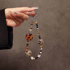 琥珀ins手机拉德挂绳串珠手机链链条复古ccd相机豹纹挂件厂家批发