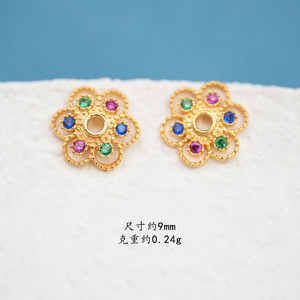 S925银镀24K金花托隔片手链项链串饰diy配件手工隔珠半成品