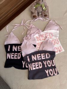 字母印花抹胸挂脖吊带背心女2025夏季新款修身显瘦打底两件套上衣