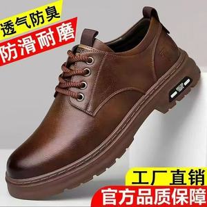 春秋新款男士厚底休闲皮鞋男复古工装系带潮流软底舒适男皮鞋代发