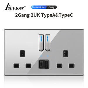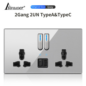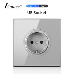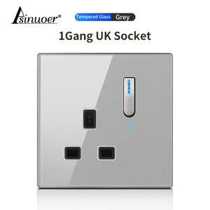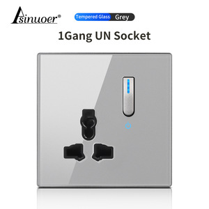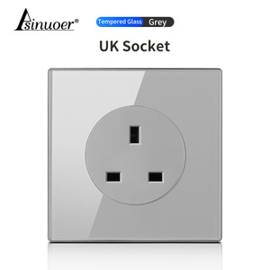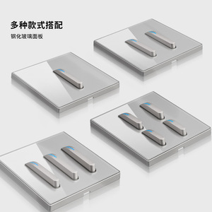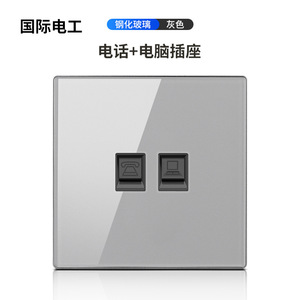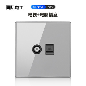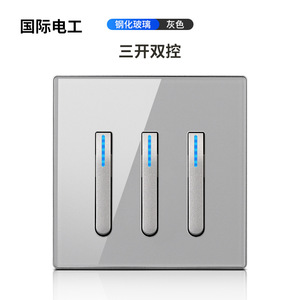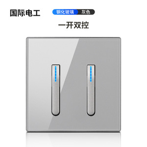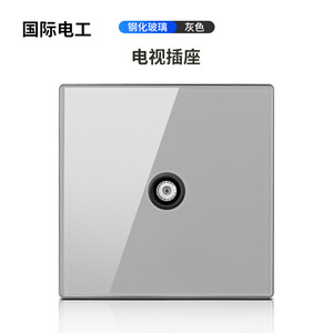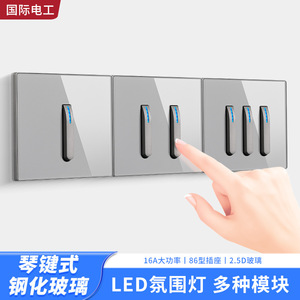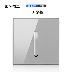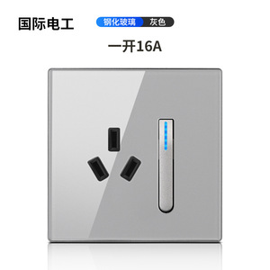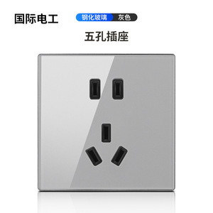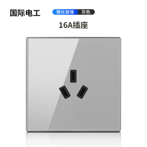 国际电工钢化玻璃灰色琴键开关插座面板86型墙壁暗装酒店家用
