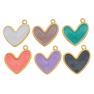 DIY饰品配件不锈钢彩色滴油挂件爱心桃心耳环项链钥匙扣跨境吊坠