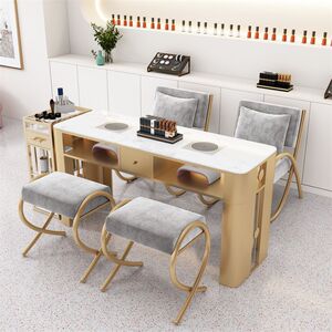 轻奢美甲桌吸尘器单人双人三人桌椅子网红桌椅组合套装绢花其他