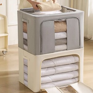 天山棉麻灰色100升折叠收纳箱衣物收纳箱整理家用杂物床底带钢架