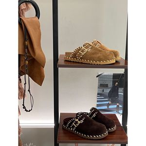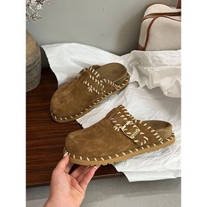 包头勃肯鞋百搭外穿2025新款复古一脚蹬懒人手工缝线穆勤鞋半拖鞋