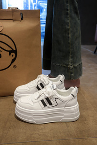 小个子秋季松糕鞋真皮超轻增高新款2025板鞋百搭休闲厚底小白鞋女