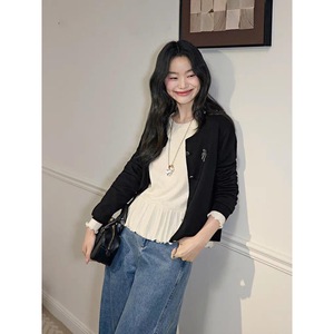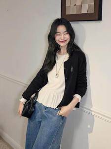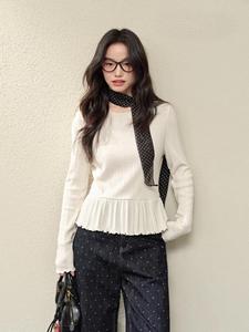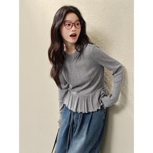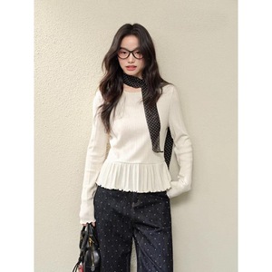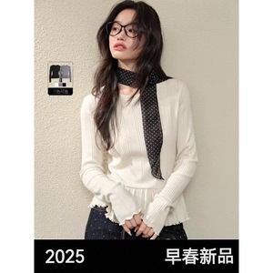 杏色长袖T恤女2025秋季新款显瘦内搭打底衫修身上衣荷叶边秋