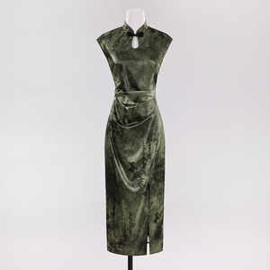 原创设计绿墨新中式女装国风日常新款旗袍X050