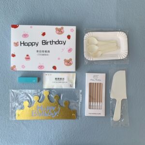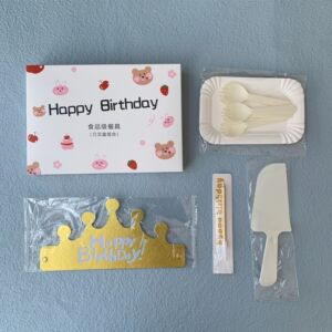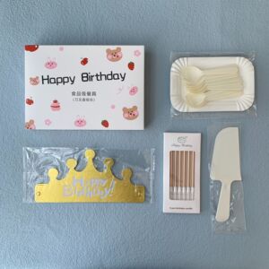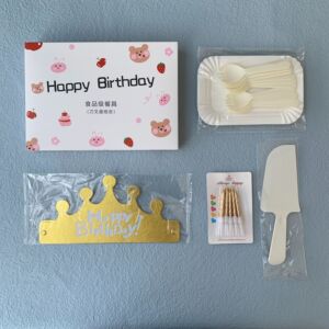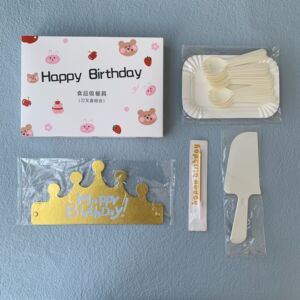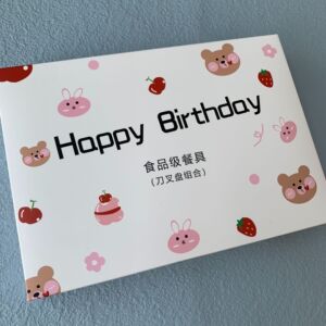 一次性餐具蛋糕餐具套装草莓小熊礼盒套装一次性刀叉盘生日蛋糕帽