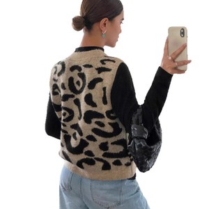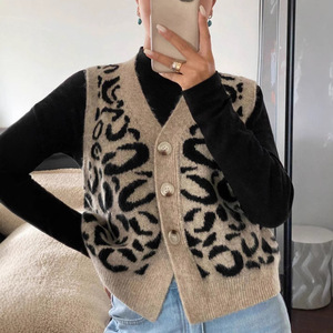 豹纹V领针织开衫毛衣外套女秋冬2025今年流行高级感短款上衣爆款