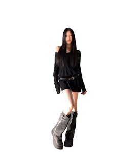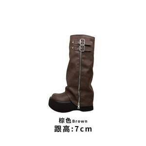 增高厚底显瘦棕色靴子女美拉德长筒靴2025新款复古西部牛仔裤管靴