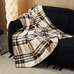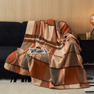 高端仿羊绒毛毯沙发盖毯午睡盖被格子双层复古四季毯冬季保暖毯子