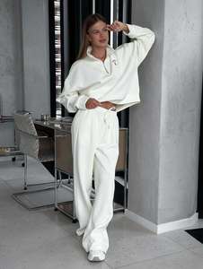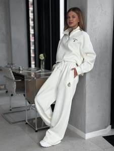 外贸shein热卖半拉链卫衣女秋冬款休闲长裤阔腿刺绣运动套装批发