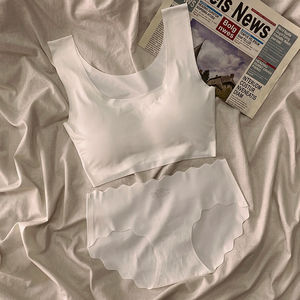 无痕冰丝内衣内裤少女套装吊带运动无钢圈文胸学生聚拢显胸小背心