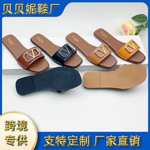 厂家跨境时尚夏季新款平底拖鞋女外穿凉拖百搭仙女风一字拖舒适