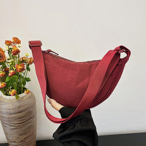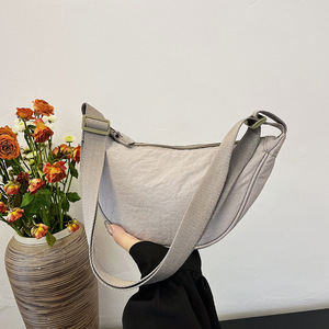 跨境纯色饺子包女2025新款潮时尚百搭轻便单肩水洗布包斜挎腋下包