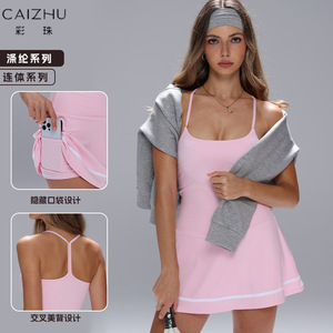 彩珠XY008跨境秋季运动健身短裤女亚马逊吊带裙裤跑步透气网球短