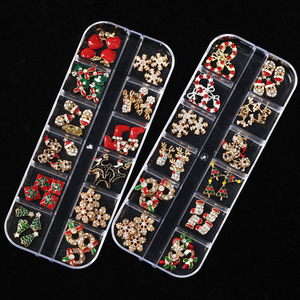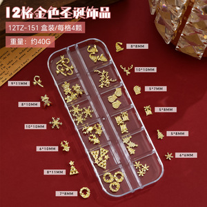 跨境美甲美甲饰品12格金属圣诞节雪花麋鹿圣诞树礼盒DIY指甲钻饰