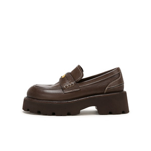 牛皮~葡萄妈同款水洗马皮金币厚底懒人一脚蹬乐福鞋女英伦小皮鞋