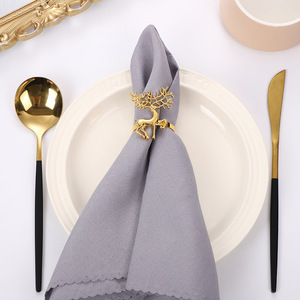 亚马逊创意合金酒店摆台圣诞小鹿餐巾环宴会婚礼高级感口布圈餐环