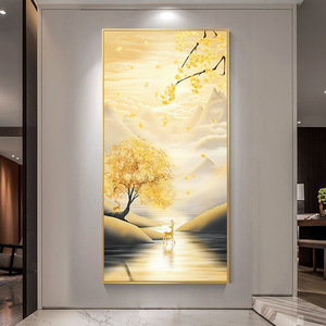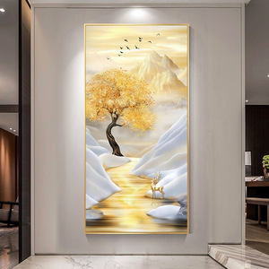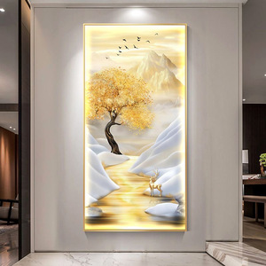 金鹿轻奢led带灯入户玄关装饰画走廊过道挂画现代寓意好风景壁画