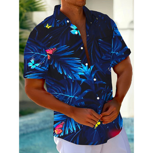 Y2 2025跨境新款跨境3D印花复古条纹衬衫 涤纶面料一件起定