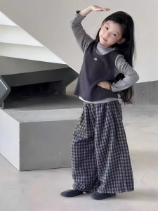 女童韩版洋气时尚套装2025秋装新款儿童毛线马甲秋季休闲裤三件套