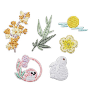兔子月亮刺绣布贴批发可爱卡通星月兔补丁贴古风刺绣可熨烫批发