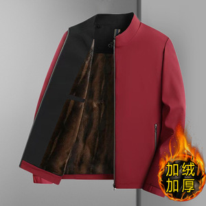 黑金爆款爸爸夹克立领外套冬装加绒商务休闲加厚中年男士夹克