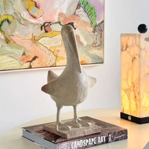 中古风鹈鹕鸟雕塑摆件样板间展厅家居书房玄关动物桌面复古装饰品