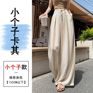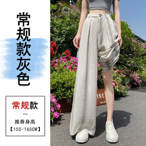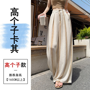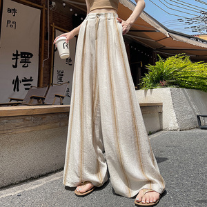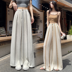冰丝棉麻条纹阔腿裤女夏季薄款天丝亚麻西装裤宽松直筒垂感拖地裤