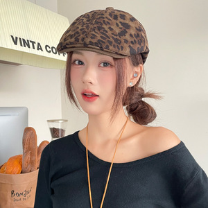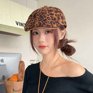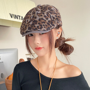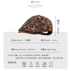 新款麂皮绒豹纹鸭舌贝雷帽子女春夏季时尚百搭显脸小大头围前进帽