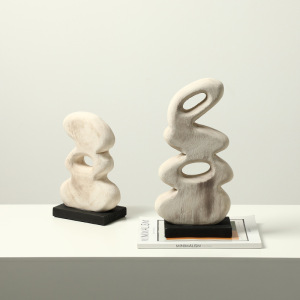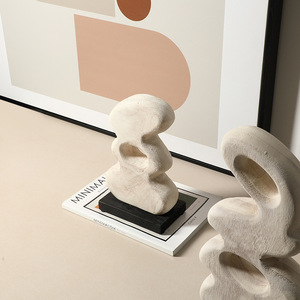 侘寂复古风抽象圆洞木头摆件售楼处会所玄关装饰柜创意家居工艺品