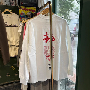 跨境美式字母印花260克重磅纯棉圆领长袖T恤男女休闲宽松STU图西