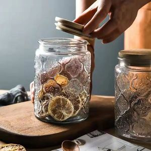 中式复古雕花玻璃密封罐糖果零食收纳瓶坚果储存罐黄桃罐头瓶批发