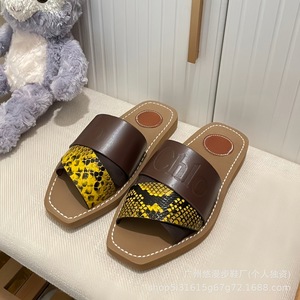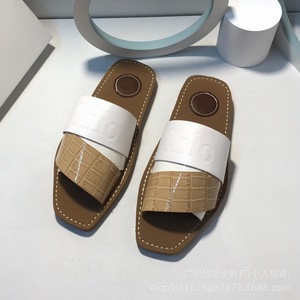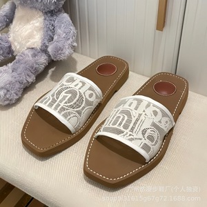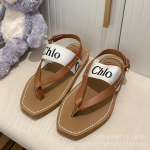 Chlo*罗马平底拖鞋女夏季时尚外穿防滑字母刺绣休闲沙滩一字凉拖