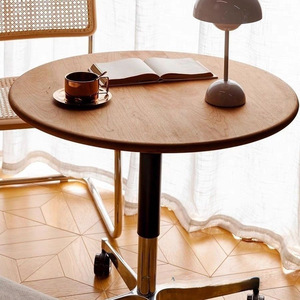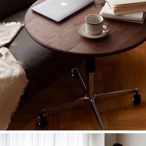 2025新款茶桌北美樱桃木北欧风可移动床边小圆桌实木升降茶几圆形