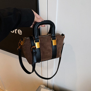 批发复古手提包小拎包女2025新款简约麂皮绒小方包百搭单肩斜挎包