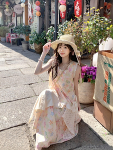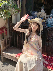 夏日绝美穿搭套装多巴胺甜美碎花无袖背心衬衣半身裙女夏两件套甜