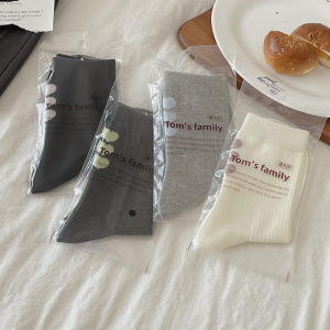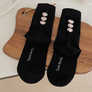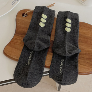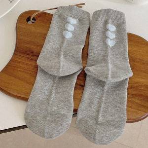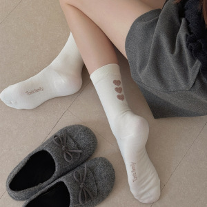 后跟植绒爱心中筒袜子女2025秋季新款灰色袜子时尚百搭堆堆袜日系
