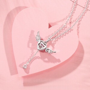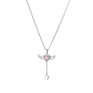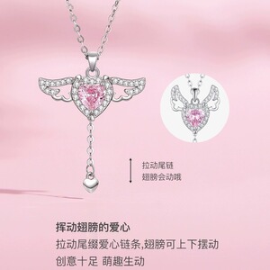 新款丘比特之心项链女轻奢小众设计翅膀会动锆石流苏爱心锁骨链