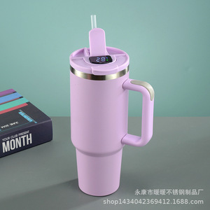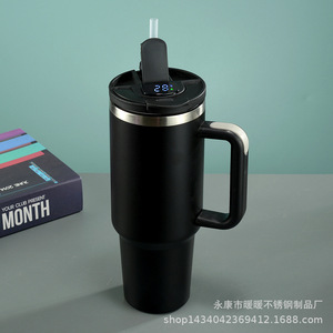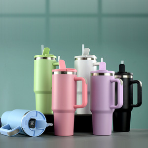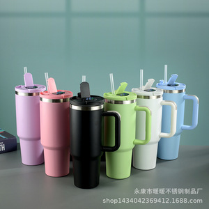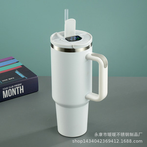 跨境爆款40oz繁花系列保温杯304不锈钢带手柄吸管杯创意真空水杯
